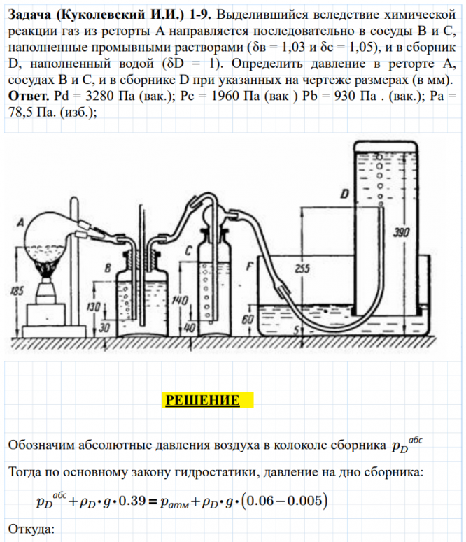 Для студентов по предмету Механика жидкости и газа (МЖГ или Гидравлика)Задача 1-9Задача 1-9