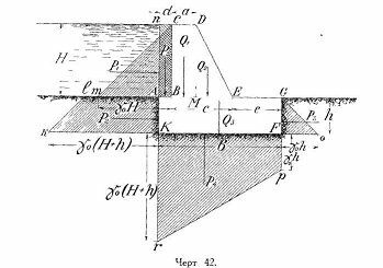Главная » Учебные материалы » Механика жидкости и газа (МЖГ или Гидравлика) » Решения задач » Несколько классов/семестров » Номер 32 » Определить коэффициент устойчивости на опрокидывание β бетонной плотины с фундаментом, распроложенной на гравелистом грунте, считая, что давления, фильтрующей под основанием плотины, воды распределяются по закону прямой линии, при чем в точке G это д