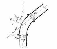 Главная » Учебные материалы » Механика жидкости и газа (МЖГ или Гидравлика) » Решения задач » Несколько классов/семестров » Номер 34 » Колено трубопровода гидроэлектрической станции находится под давлением Н=200 м. Диаметр трубопровода d=1 м; угол между направлениями осей, соединяемых коленом труб составляет θ=60°. Определить равнодействующую давлений на колено (рис. 43).