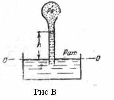 Определить высоту, на которую поднимается вода в вакуумметре, если абсолютное давление воздуха внутри баллона р'В=0,095МПа (рис. B). Сформулировать, какое давление измеряет вакуумметр.