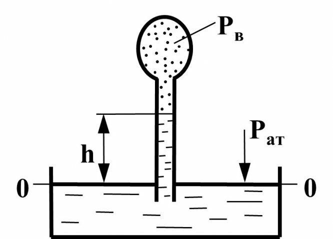Определить высоту, на которую поднимается вода в вакуумметре, если абсолютное давление воздуха внутри баллона pв=0,95 ат (см рис.2). Рис.2.