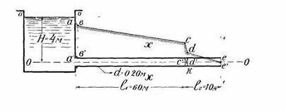 Дана система (рис. 85), состоящая из бака и прямого трубопровода с краном К. Определить расход и картину распределения давлений. Размеры на рисунке. ![]()