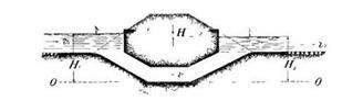 Определить диаметр железобетонного дюкера под насыпью железной дороги, пропускающего расход Q=2 м3/с, если дано: 1) скорость подвода υ1 равна скорости отвода υ2 и равна 0,8 м/с; 2) длина дюкера L=15 м.; 3) перепад Н не должен превосходить 0,07 м. (ри