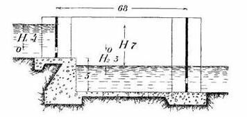 Главная » Учебные материалы » Механика жидкости и газа (МЖГ или Гидравлика) » Решения задач » Несколько классов/семестров » Номер 74 » Определить время наполнения и опорожнения шлюзовой камеры при следующих данных: ширина камеры 12 м, длина камеры 68 м, площадь водопропускных отверстий (верхних и нижних) ω=3,2 м2, центр тяжести верхних отверстий находится на глубине Н1=4 м (разность