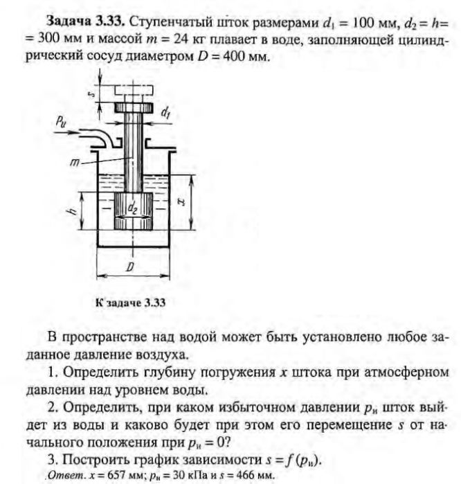 Для студентов по предмету Механика жидкости и газа (МЖГ или Гидравлика)Задача 3-33Задача 3-33