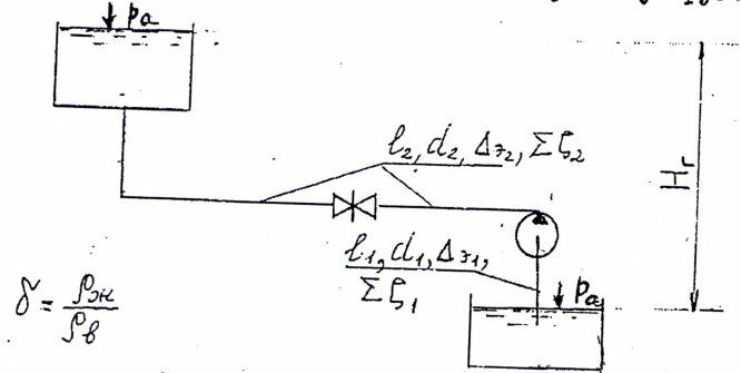 Для студентов по предмету Механика жидкости и газа (МЖГ или Гидравлика)Центробежный насос поднимает жидкость с относительной плотностью δ на высоту НГ по трубам длиной l1 и диаметром d1, длиной l2 и диаметром d2. Заданы хЦентробежный насос поднимает жидкость с относительной плотностью δ на высоту НГ по трубам длиной l1 и диаметром d1, длиной l2 и диаметром d2. Заданы х