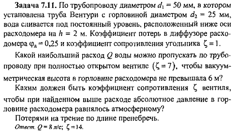Для студентов по предмету Механика жидкости и газа (МЖГ или Гидравлика)Задача 7-11Задача 7-11