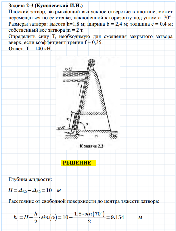 Для студентов по предмету Механика жидкости и газа (МЖГ или Гидравлика)Задача 2-3Задача 2-3