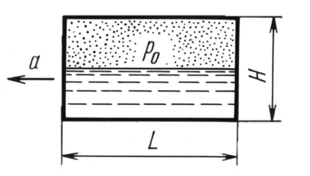 Закрытый призматический сосуд размерами L × Н × С = 3 × 1 × 1м до середины высоты заполнен водой, над уровнем которой имеется избыточное давление газа кПа. Сосуд движется горизонтально с постоянным ускорением .