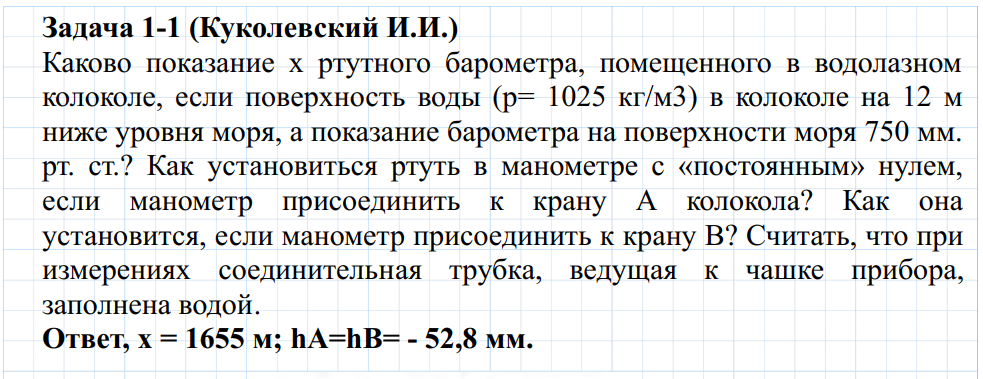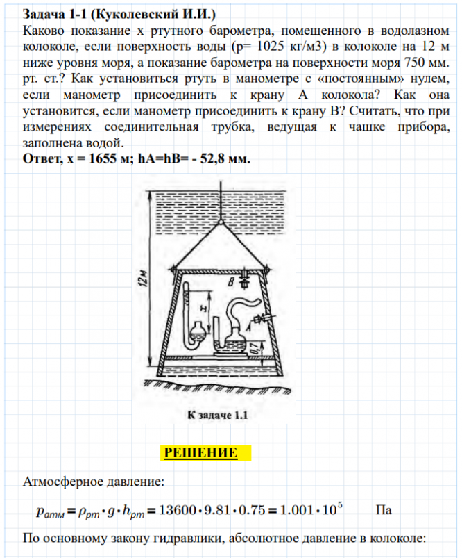 Для студентов по предмету Механика жидкости и газа (МЖГ или Гидравлика)Задача 1-1Задача 1-1