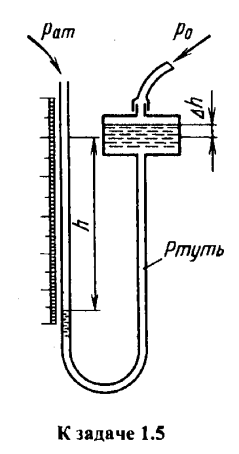 Использование шкалы с постоянным нулем при измерении давлений чашечным ртутным манометром или вакуумметром вносит погрешность в результат измерения. Для нахождения истинной величины давления в показание h прибора необходимо вносить поправку на смешение Δh уровня ртути в чашке. Пренебрегая влиянием капиллярности, определить: