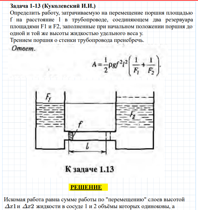 Для студентов по предмету Механика жидкости и газа (МЖГ или Гидравлика)Задача 1-13Задача 1-13