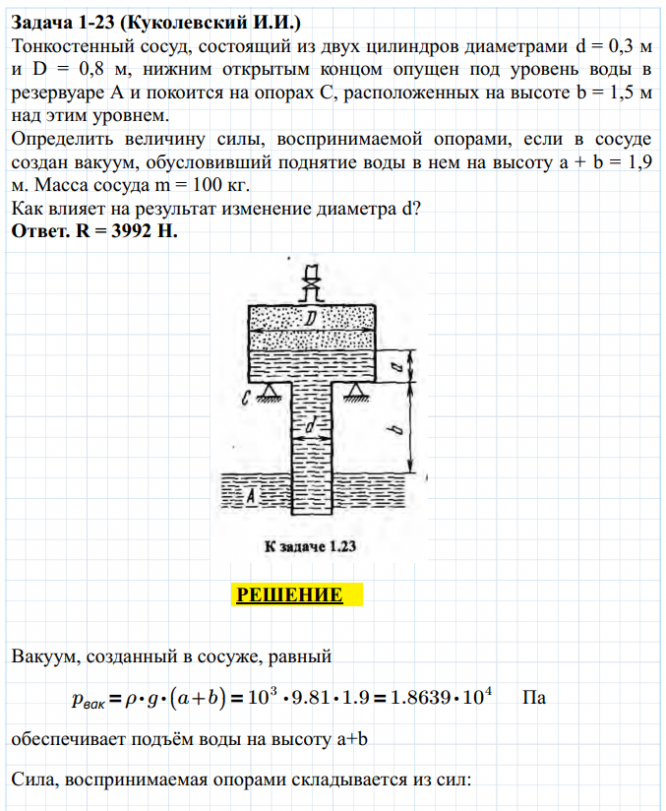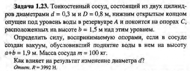Для студентов по предмету Механика жидкости и газа (МЖГ или Гидравлика)Задача 1-23Задача 1-23