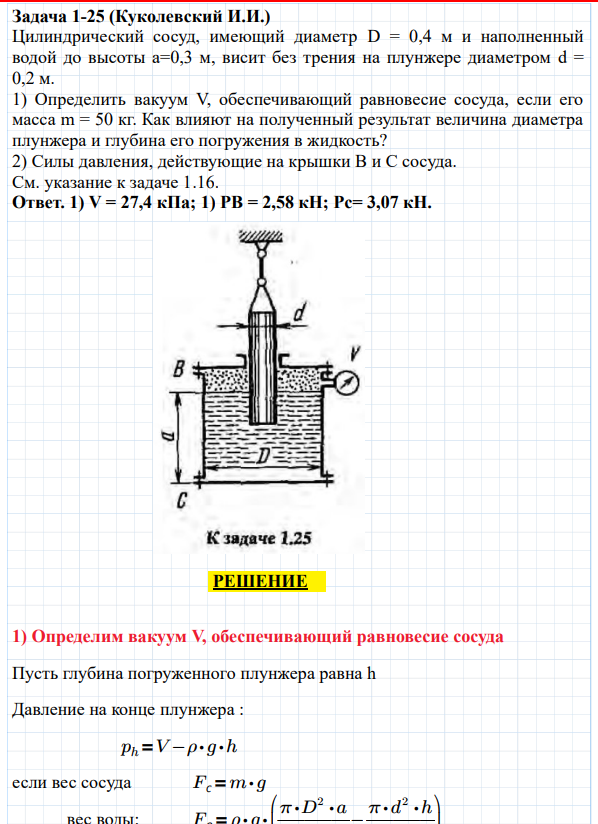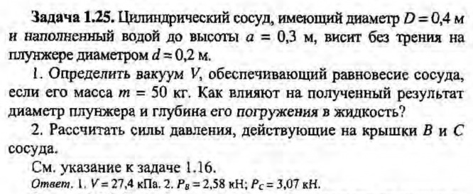 Для студентов по предмету Механика жидкости и газа (МЖГ или Гидравлика)Задача 1-25Задача 1-25