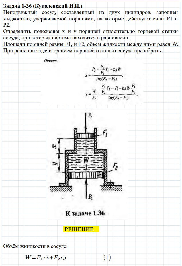 Для студентов по предмету Механика жидкости и газа (МЖГ или Гидравлика)Задача 1-36Задача 1-36