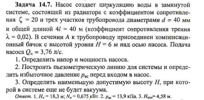 Для студентов по предмету Механика жидкости и газа (МЖГ или Гидравлика)Задача 14-7Задача 14-7