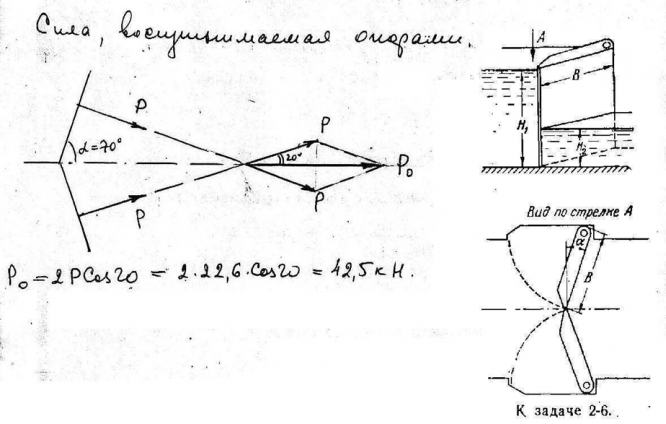 Построить эпюру нагрузки от воздействия воды на поверхность ворот. Определить силу Р0, воспринимаемую опорами, расположенными на оси вращения каждой из створок.