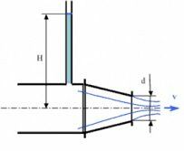 При испытании на воде модели насадка, выходной диаметр которого dм=30 мм, под статическим напором Hм=50 м получены расход Qм=18 л/сек и средняя скорость в сжатом сечении струи vм=30 м/с. Каков должен быть выходной диаметр d насадка в натуре и под каким напором Н он должен работать на воде, чтобы получить Q=100 л/сек и v=60 м/с. Считать, что испытания модели произведены в зоне турбулентной автомодельности, в силу чего коэффициенты истечения для модели и натуры одинаковы.