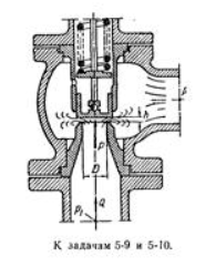 Задача (Куколевский И.И.) 5-10. Предохранительный клапан диаметром Dм = 25 мм при открытии hм = 2 мм пропускает расход масла QМ = 5 л/сек под перепадом давлений ?Pм = P1-P2=1 МПа. При этом сила давления на клапан Рн = 150 Н. Как следует изменить диаметр клапана, чтобы при увеличении расхода той же жидкости в 4 раза требуемый перепад давлений увеличился только в 2 раза? Найти открытие клапана h и действующую на него силу Р. Считать, что клапан работает в квадратичной зоне сопротивления.