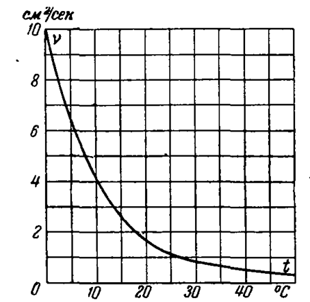 Задача (Куколевский И.И.) 5-17. Машинное масло, для которого задана зависимость кинематического коэффициента вязкости V от температуры, прокачивается по трубке диаметром d = 20 мм в количестве Q = 4 л/сек. Определить режим движения при t=100С и t = 40° С и указать температуру, отвечающую критическому значению числа Рейнольдса (Rекр=2300).