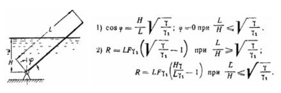 Задача (Куколевский И.И.) 3-28. Однородный брус постоянного сечения F, длиной L и плотностью ?1, своим нижним концом шарнирно закреплен на глубине Н? > ?1.