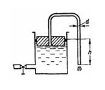 Задача (Куколевский И.И.) 9-24. Прибор для дозировки небольших количеств жидкости состоит из цилиндра, в котором находится поплавок, снабженный сифонной трубкой. Определить расходы воды (v = 0,01 Ст) и химической жидкости v = 0,1 Ст), если диаметр и длина трубки d = 5 мм, l = 600 мм; выходное сечение трубки расположено ниже свободной поверхности на h = 250мм. Учитывать только потери на трение. Указание. Для определения режима движения жидкости в трубке воспользоваться выражением критического напора (9-23), сравнив с ним величину располагаемого напора h. При турбулентном режиме коэффициент сопротивления трения определять по формуле (9-16).