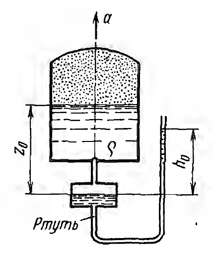 Задача 4-30. Куколевский И.И. Показание ртутного чашечного манометра, присоединенного к замкнутому баку, в котором находится жидкость плотностью ρ = 1500 кг/м3, равно h0 = 800 мм.