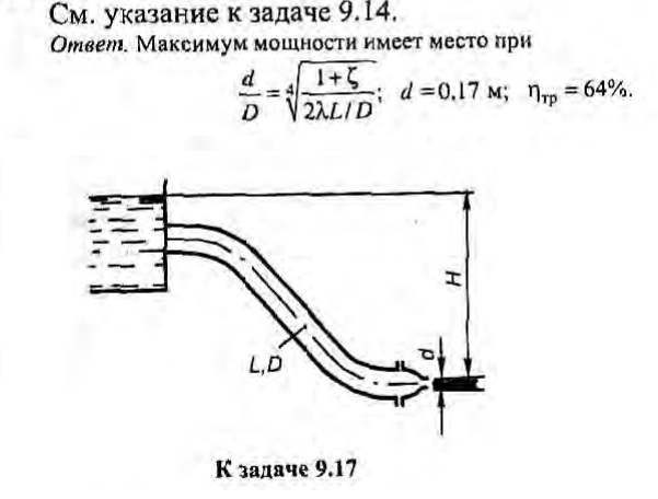 Для студентов по предмету Механика жидкости и газа (МЖГ или Гидравлика)Задача 9-17Задача 9-17
