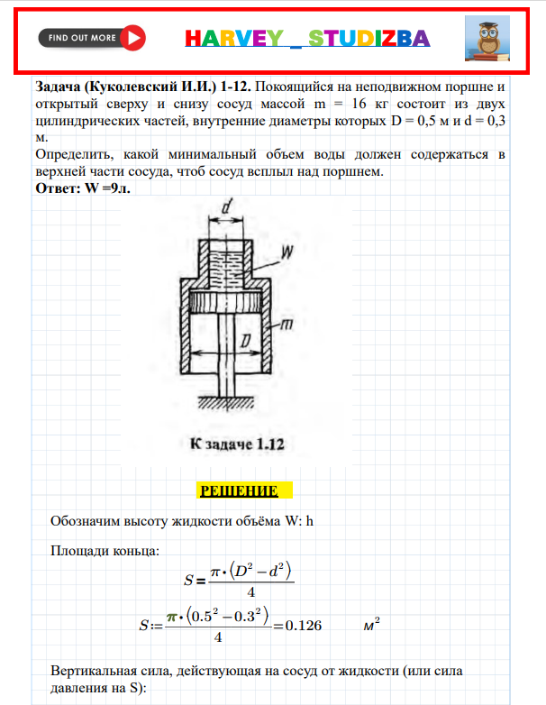 Для студентов по предмету Механика жидкости и газа (МЖГ или Гидравлика)Задача 1-12Задача 1-12
