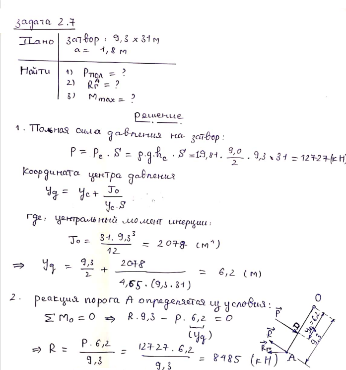 Для студентов по предмету Механика жидкости и газа (МЖГ или Гидравлика)Задача 2-7Задача 2-7