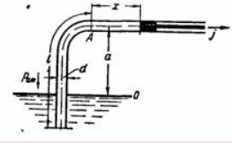 Задача (Куколевский И.И.) 12-2. Поршень, двигаясь в трубе вправо от сечения А, увлекает за собой жидкость с постоянным ускорением j = 1,5 м/с2. В начальном положении при x = 0 скорость V = 0.