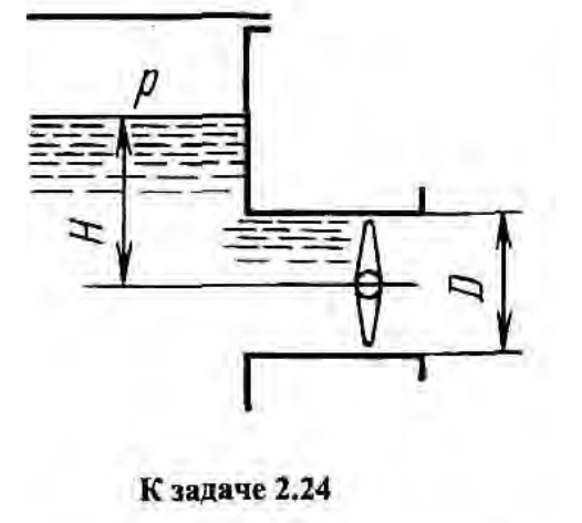 Задача 2-24Закрытый резервуар с жидкостью (плотностью ρ = 900 кг/м3) имеет выпускную трубу диаметром D = 0,5 м, перекрытую дисковым затвором. Избыточное давление в резервуаре p = 8 кПа; H = 0,65 м.