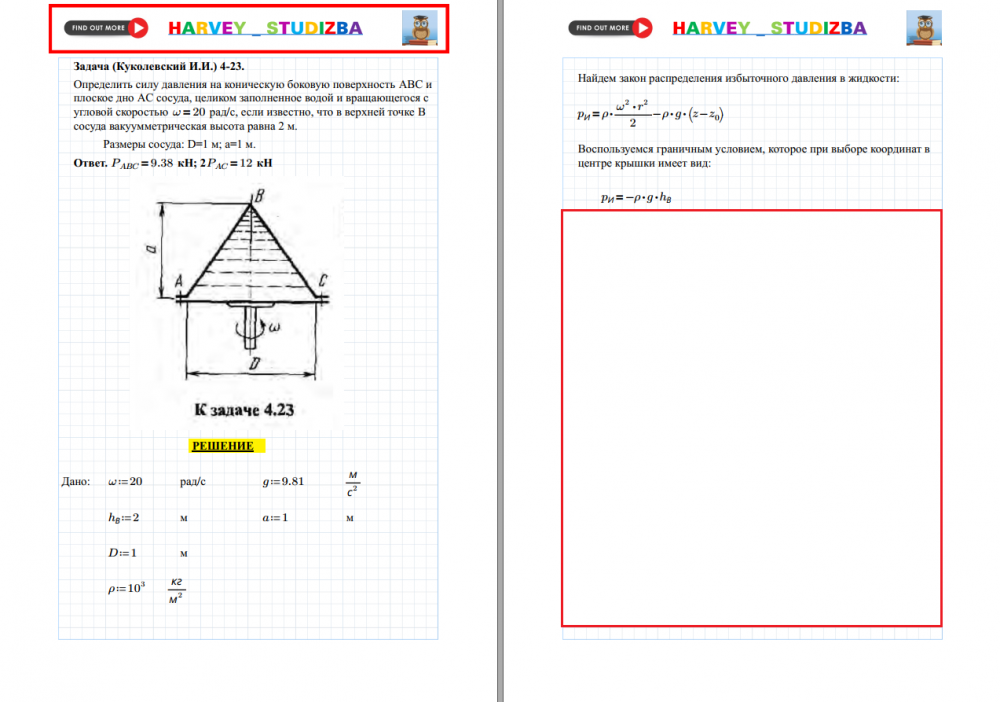 Для студентов по предмету Механика жидкости и газа (МЖГ или Гидравлика)Задача 4-23Задача 4-23