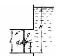 Задача (Куколевский И.И.) 2-16 . Дисковый загвор диаметром D=1 м, установленный в трубе под углом а = 45° к горизонту, закрывает выход воды из резервуара А в резервуар В. Определить величину внешнего начального момента М, необходимого для открытия затвора против часовой стрелки, с учетом момента трения в цапфах затвора диаметром d = 0,15 м, если коэффициент трения f = 0,2. Задачу решить для двух случаев: 1) в трубе за затвором воздух под атмосферным давлением; 2) труба за затвором заполнена водой. Высоты уровней: H 1 =1,2 м и Н 2 = 2 м. Ответ. M 1 = 480 кН*м; М 2 = 370 кН*м..