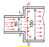 Для студентов по предмету Механика жидкости и газа (МЖГ или Гидравлика)На трубопроводе имеется переход с диаметра 50 мм на диаметр 100 мм (диаметры внутренние). По трубопроводу движется вода, имеющая температуру 20ºС. Её На трубопроводе имеется переход с диаметра 50 мм на диаметр 100 мм (диаметры внутренние). По трубопроводу движется вода, имеющая температуру 20ºС. Её