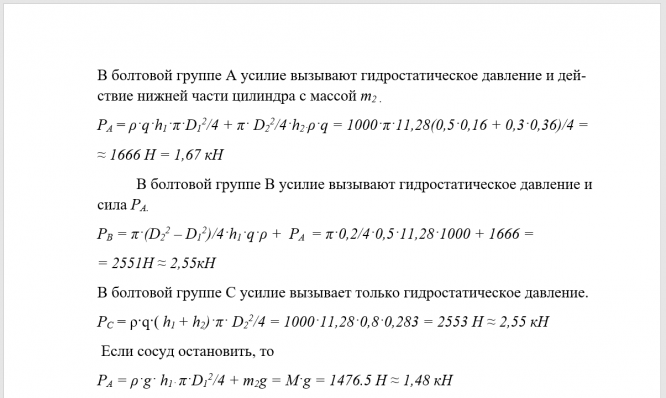 Определить нагрузки на болтовые группы А, В и С при ускоренном движении сосуда.