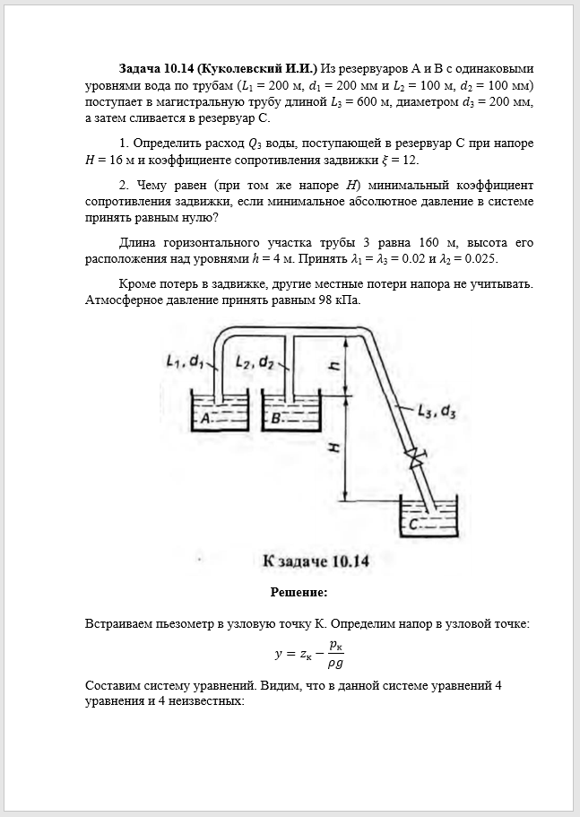 Для студентов по предмету Механика жидкости и газа (МЖГ или Гидравлика)Задача 10-14Задача 10-14