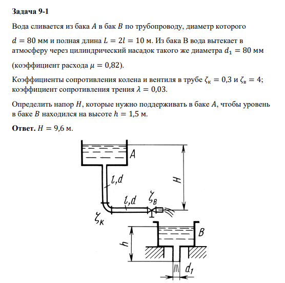 Для студентов по предмету Механика жидкости и газа (МЖГ или Гидравлика)Задача 9-1Задача 9-1