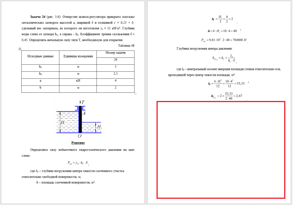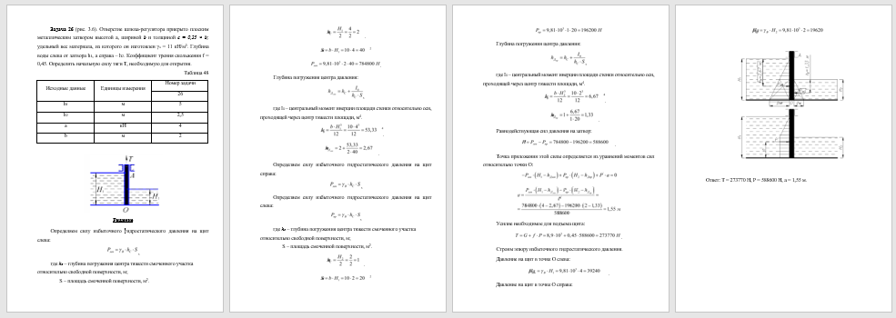 Для студентов по предмету Механика жидкости и газа (МЖГ или Гидравлика)Отверстие шлюза-регулятора прикрыто плоским металлическим затвором высотой a, шириной b и толщиной c = 0,25 × b; удельный вес материала, из которого оОтверстие шлюза-регулятора прикрыто плоским металлическим затвором высотой a, шириной b и толщиной c = 0,25 × b; удельный вес материала, из которого о