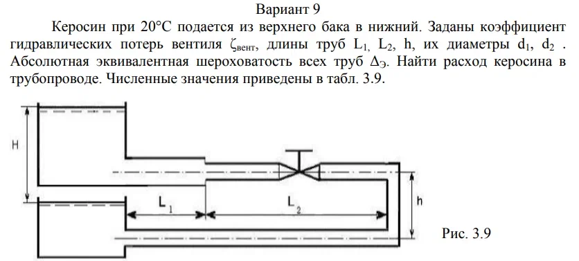 Задача 4: Найти расход керосина в трубопроводе вариант 9