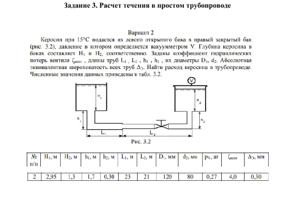 Задача 3: Расчет течения в простом трубопроводе вариант 2