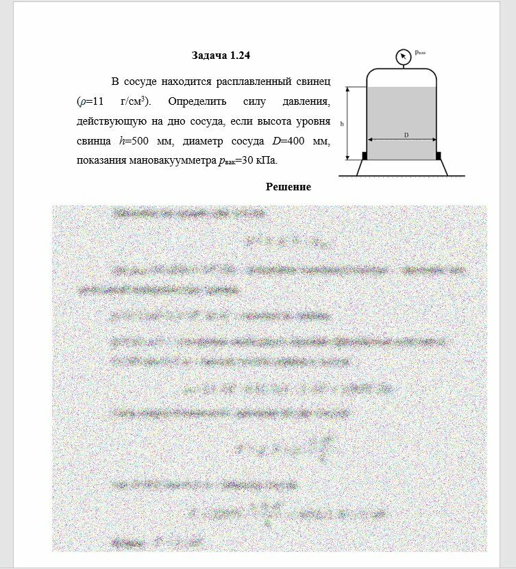 Для студентов по предмету Механика жидкости и газа (МЖГ или Гидравлика)В сосуде находится расплавленный свинец (ρ = 11 г/см3). Определить силу давления, действующую на дно сосуда, если высота уровня свинца h = 500 мм, диаВ сосуде находится расплавленный свинец (ρ = 11 г/см3). Определить силу давления, действующую на дно сосуда, если высота уровня свинца h = 500 мм, диа
