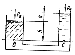 Главная » Учебные материалы » Механика жидкости и газа (МЖГ или Гидравлика) » Решения задач » Несколько классов/семестров » Номер 2 » Вариант 1 » В сообщающиеся сосуды налиты вода (ρ=1000 кг/м3) и бензин. Определить плотность бензина, если высота столба воды h=150 мм, а разность уровней жидкости в сосудах a=60 мм.