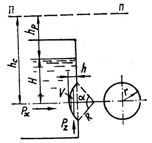 Главная » Учебные материалы » Механика жидкости и газа (МЖГ или Гидравлика) » Решения задач » Несколько классов/семестров » Номер 2 » Вариант 12 » Круглое отверстие в вертикальной стенке закрытого резервуара с водой перекрыто сферической крышкой (рис. 2.15). Радиус сферы R=0,3 м, угол а=120°, глубина погружения центра тяжести отверстия Н=0,5 м. Определить силу давления на крышку, если избыточно