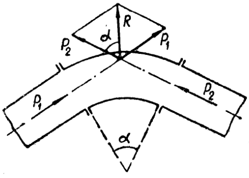 Главная » Учебные материалы » Механика жидкости и газа (МЖГ или Гидравлика) » Решения задач » Несколько классов/семестров » Номер 2 » Вариант 13 » Определить силу давления жидкости на закругление (рис. 2.16), а также отрывающее и сдвигающее усилия, которые возникают на стыках закругления с прямолинейными участками трубопровода, если диаметр трубы d=250 мм, угол поворота a=60°, избыточное давлен