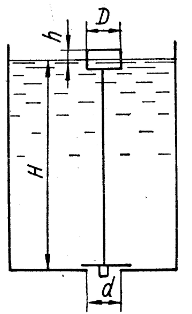 Во избежание переполнения водой резервуар снабжен поплавковым клапаном, перекрывающим отверстие диаметром d=50 мм в дне резервуара (рис. 2.20). Определить диаметр D цилиндрического поплавка высотой h=100 мм, при котором максимальный уровень воды в ре