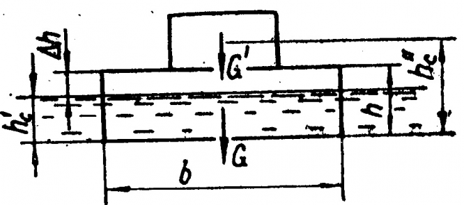 Главная » Учебные материалы » Механика жидкости и газа (МЖГ или Гидравлика) » Решения задач » Несколько классов/семестров » Номер 2 » Вариант 18 » Понтон (рис. 2.22) весом G=8 кН имеет длину l=5 м, ширину b=2,5 м и высоту h=1 м. Проверить понтон на остойчивость при максимальной нагрузке G', при которой высота бортов над ватерлинией lh=0,4 м, если центр тяжести понтона расположен на расстоянии h