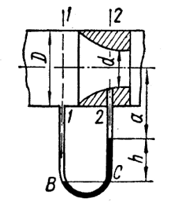Главная » Учебные материалы » Механика жидкости и газа (МЖГ или Гидравлика) » Решения задач » Несколько классов/семестров » Номер 3 » Вариант 5 » Определить расход бензина (ρ=700 кг/м3), подаваемого по горизонтальной трубе диаметром D=25 мм, в которой установлено сопло диаметром d=10 мм и дифференциальный ртутный манометр, показания которого h=100 мм. Потерями напора пренебречь (рис. 3.6).