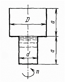 Сосуд, вращающийся относительно вертикальной оси, состоит из двух цилиндров одинаковой высоты a=200 мм и диаметрами d=150 мм и D=300 мм. Нижний цилиндр целиком заполнен жидкостью.