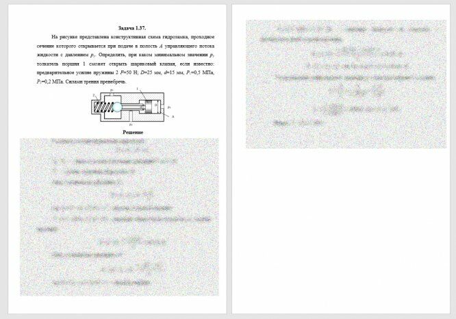 Главная » Учебные материалы » Механика жидкости и газа (МЖГ или Гидравлика) » Решения задач » Несколько классов/семестров » Номер 1 » Вариант 37 » На рисунке представлена конструктивная схема гидрозамка, проходное сечение которого открывается при подаче в полость A управляющего потока жидкости с давлением ру. Определить, при каком минимальном значе­нии ру толкатель поршня 1 сможет открыть шарик